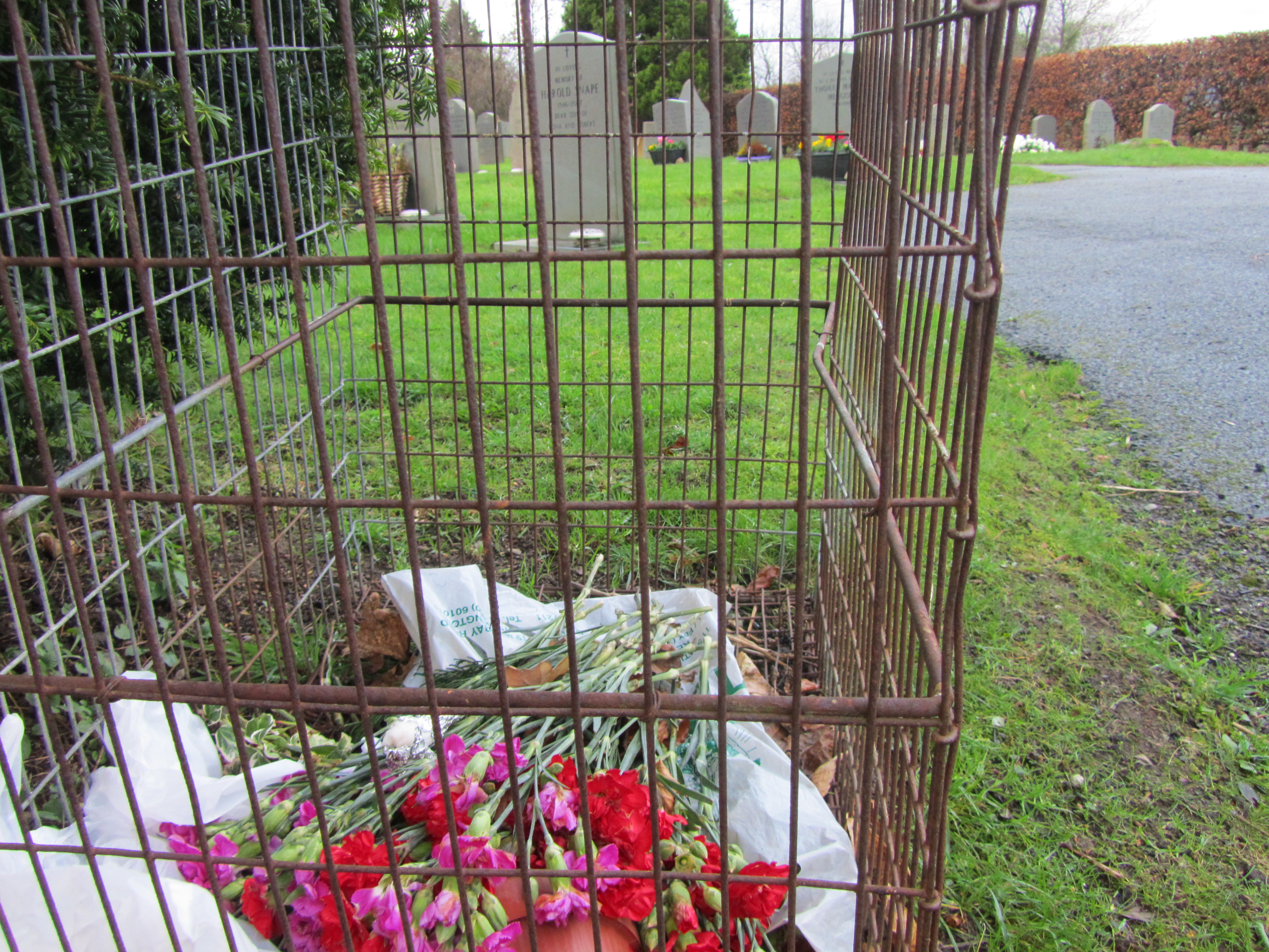 Wanting to leave flowers on it, I recycled a few freshly discarded ones left by previous visitors.