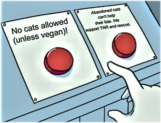 Thousands of cats may be fed plant-based foods (although the product makers run into complications applying the nutritional rules), but comprehensive nutritional data attesting to safety continues to be lacking. And there’s an ethical problem in trying to make that data sufficient. Frankly, it’s testing on cats, which itself is not vegan.